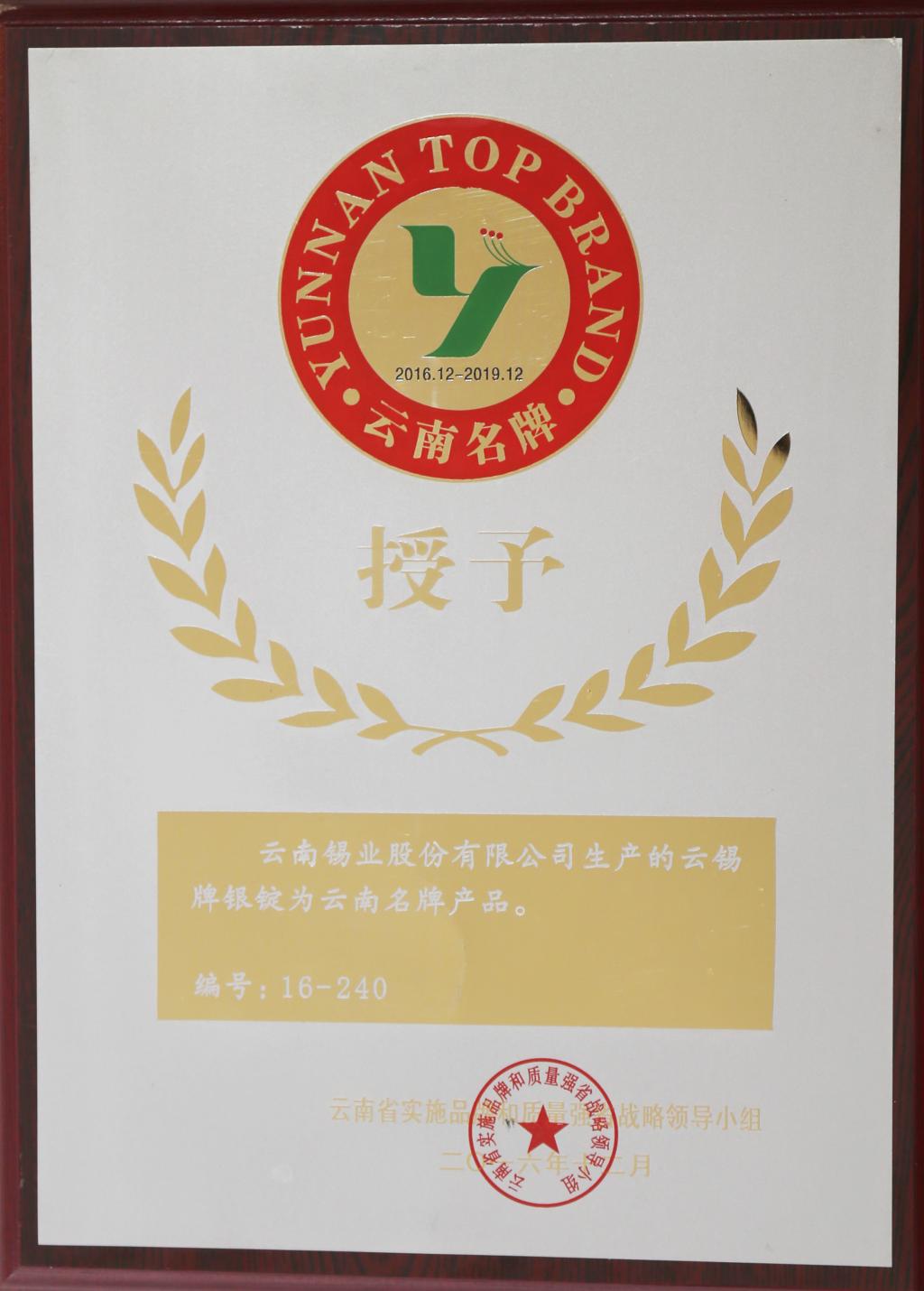 云錫牌錫錠、鑄造錫鉛爆料、鉛錠、鉍錠、銦錠為中國知名出口品牌