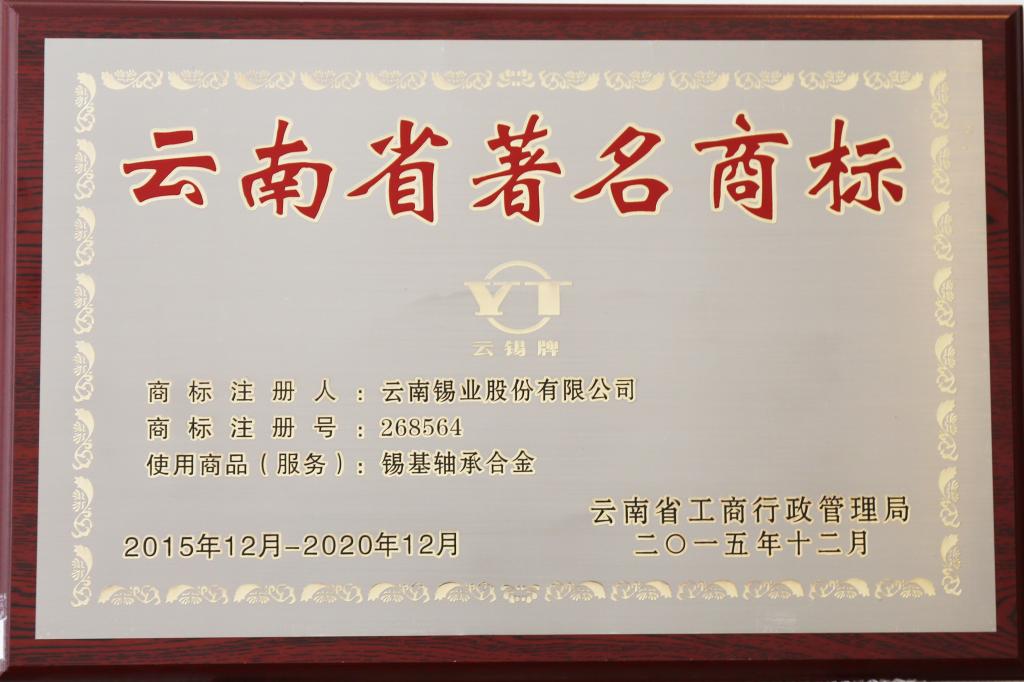 云錫牌錫基軸承合金為云南省著名商標(biāo)