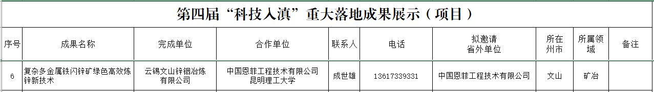 近日,文山鋅銦收到省科技廳通知,國家科技部、云南省人民政府定于12月初召開第四屆科技入滇對接會,文山鋅銦冶煉公司作為重大落地成果入選單位參會。