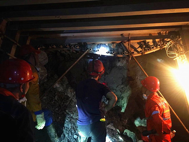 2017年11月,因遇老熊硐斷裂,巖石變化大,迎頭松散,工程一度被迫放緩,每月掘進量僅50米多米,為保障安全掘進及確保施工進度,竹葉山坑生產(chǎn)股技術(shù)人員積極與施工單位共同攻關(guān),探討提高施工進度的措施辦法。經(jīng)過反復(fù)論證、實踐,探索出了采用3米錨桿超前支護后,再用密集鑲支護的辦法,從而扼制了因迎頭松散阻礙施工進度的窘境。為保證施工質(zhì)量,技術(shù)人員克服每次往返15千米的艱辛,勤跑現(xiàn)場,及時做好技術(shù)監(jiān)督和技術(shù)指導(dǎo),從而保障了整個工程的施工。
