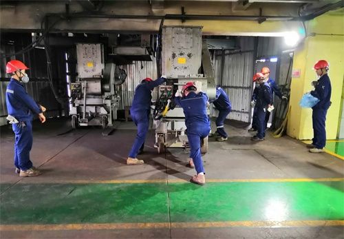 而焙燒工序與行車班相反,全是一群男子漢,少了女同胞的認真細致,但他們粗中有細的,更換拋料機便成了技能比賽關(guān)鍵設(shè)備。因為拋料機是沸騰焙燒工序更換比較頻繁的一個設(shè)備,需要力量也需要技術(shù),如何快速、準確地更換拋料機,確保沸騰爐連續(xù)進料。更換拋料機技能比武是三人一組在模擬正在使用的拋料機故障下進行,需要盡快更換一臺備用的,先把正在使用的從沸騰爐拋料口拉出來,再把備用的推進去,接到拋料口以及爐前倉的下料口,確保物料可以準確拋入爐內(nèi)。他們沉著應(yīng)戰(zhàn),展現(xiàn)出熟練的操作技能、拼搏的進取精神、通力協(xié)作的團隊意識,充分展示了一線操作人員良好的職業(yè)素養(yǎng)、精神風貌和業(yè)務(wù)素質(zhì)。最后,李紹林、張后奎、孟順林以2分55秒的最快速度獲勝。