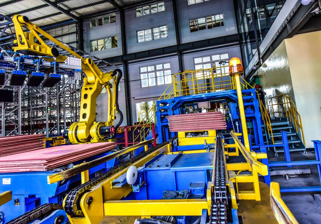 綠色智能發(fā)展取得新成果。以打造“智能”工廠,推進(jìn)“數(shù)字云錫”建設(shè)為契機(jī),強(qiáng)化綠色智能補(bǔ)鏈、改革創(chuàng)新強(qiáng)鏈作用,深入探索5G工業(yè)應(yīng)用,5G智能倉(cāng)儲(chǔ)系統(tǒng)已順利拉通全部流程,實(shí)現(xiàn)了“無(wú)人銅電解車間”的完美轉(zhuǎn)型。