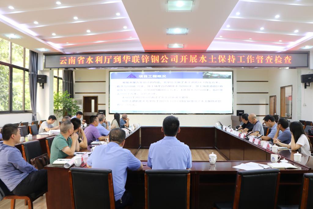 近日,云南省水利廳水土保持生態(tài)環(huán)境監(jiān)測(cè)總站正處級(jí)干部李叔東率檢查組到華聯(lián)鋅銦公司開展水土保持工作督導(dǎo)檢查。華聯(lián)鋅銦公司黨委副書記、副董事長(zhǎng)、總經(jīng)理趙云魁介紹相關(guān)工作情況。