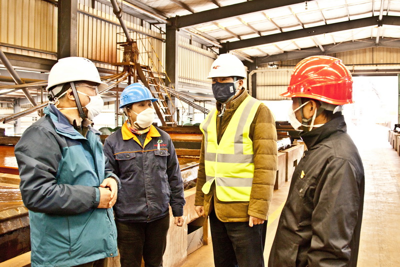 張濤到冶煉分公司,冶煉分公司黨委書(shū)記王嚴(yán),經(jīng)理王建偉,副經(jīng)理毛偉陪同考察。