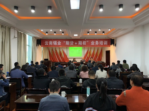 3月5日,錫業(yè)股份在昆明高新區(qū)辦公樓開展為期一天的期貨套期保值業(yè)務(wù)培訓(xùn),邀請知名期現(xiàn)實戰(zhàn)專家、瑞達期貨產(chǎn)業(yè)事業(yè)部總經(jīng)理張?zhí)煊?,為公司涉及期貨業(yè)務(wù)單位人員和部門高級管理人員講授期貨和期權(quán)知識。