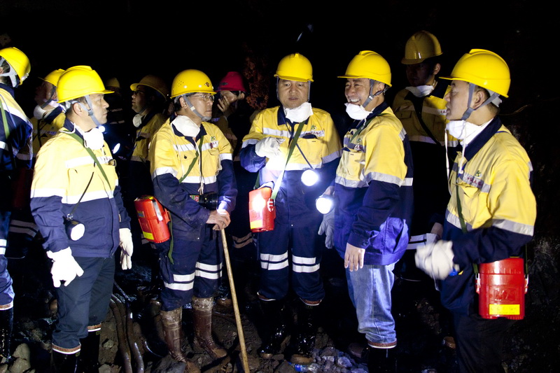3月6日,紅河州常務(wù)副州長李成武率個舊市市長王崢,州、市相關(guān)部門負責人等到大屯錫礦井下實地檢查安全生產(chǎn)工作,召開現(xiàn)場工作會,聽取控股公司開展礦山安全生產(chǎn)“攻堅克難”和“三同時”工作情況。控股公司黨委書記、董事長張濤,黨委副書記、副董事長、總經(jīng)理李剛,黨委常委、副總經(jīng)理程睿涵陪同檢查。