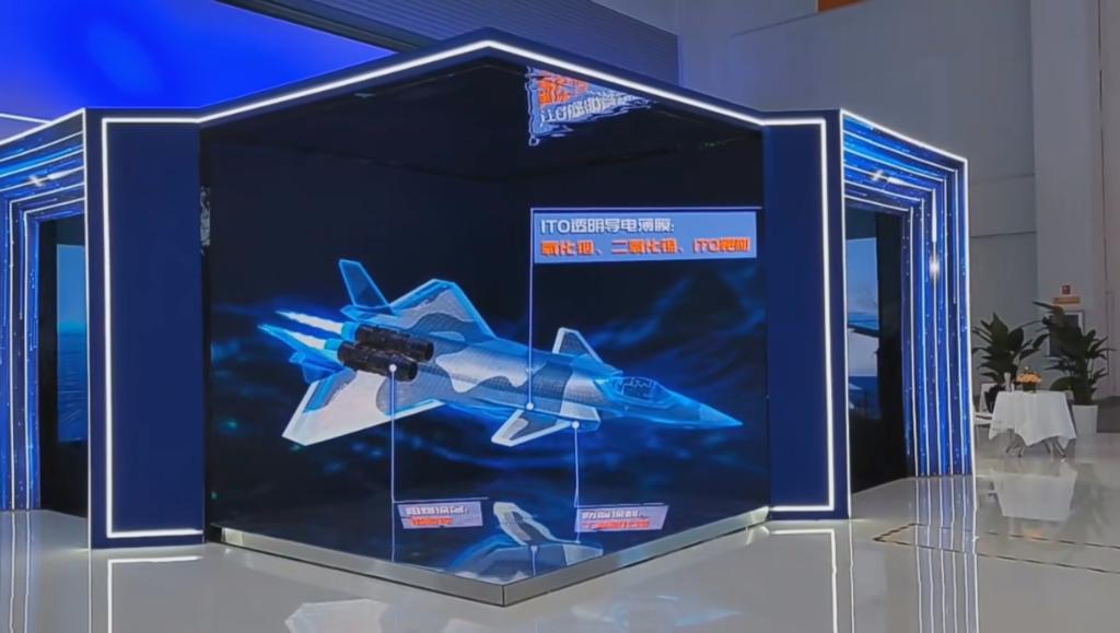 航母、衛(wèi)星、智能機器人……裸眼3D折角屏以極具視覺震撼的特效,生動展示錫基、銦基合金在大國重器制造中的應(yīng)用,成為制造業(yè)館的靚麗打卡點。