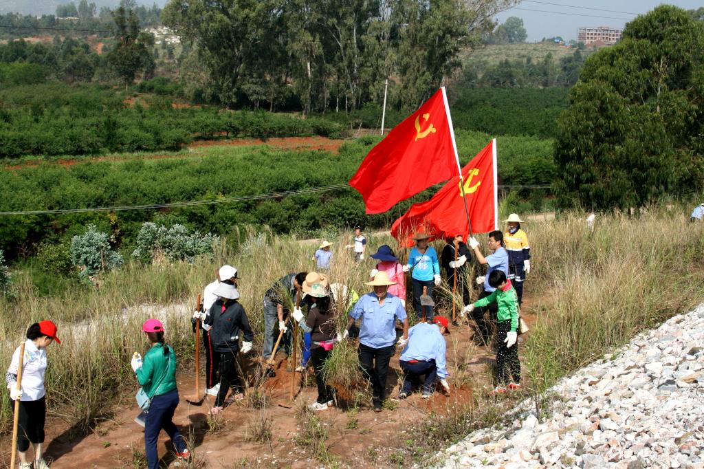 5月27日,兩面鮮紅的黨旗飄揚在官家山團山尾礦壩上,大屯錫礦機關(guān)黨總支、氧化礦車間黨支部近80名黨員、入黨積極分子聚集在黨旗下,種植草木,穩(wěn)固壩體,保護(hù)生態(tài)環(huán)境。