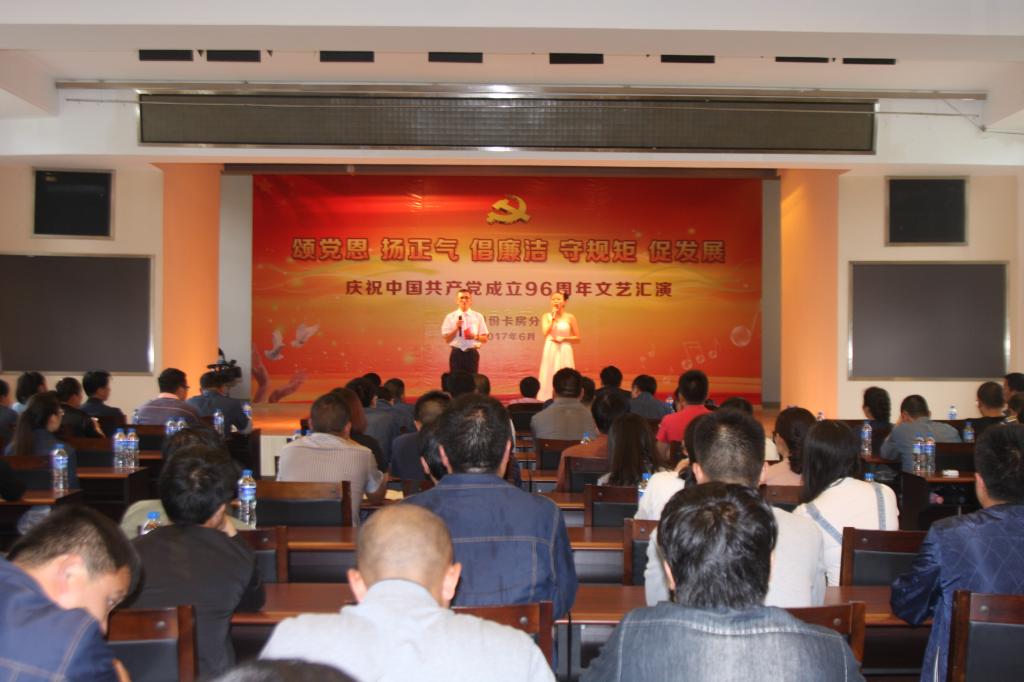 6月28日下午,卡房分公司黨委圍繞“貫徹六中全會(huì)精神,推進(jìn)全面從嚴(yán)治黨” 黨風(fēng)廉政教育月活動(dòng)主題,舉辦了一臺(tái)以小品、情景劇、詩(shī)朗誦等貫穿廉潔從業(yè)主線的慶祝中國(guó)共產(chǎn)黨成立96周年文藝匯演