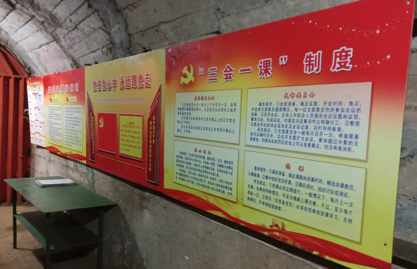 在提升改造后的“黨員學(xué)習(xí)陣地”內(nèi),有著整齊干凈的學(xué)習(xí)休息環(huán)境,配有熱水熱茶。內(nèi)設(shè)有黨報(bào)黨刊、黨建讀物,墻上掛有入黨誓詞、黨員義務(wù)和權(quán)利、“三會(huì)一課”制度、黨員積分制公示欄等牌匾;還有著排列整齊的各種操作規(guī)程、崗位職責(zé)、班組隱患整改、違章整治、上班人員定位系統(tǒng)管理等內(nèi)容,以及安全交接工作記錄、班組工具箱、與地面聯(lián)系座機(jī)電話和愛心小藥箱等。它既是一間礦山基層黨建工作和班組規(guī)范管理的展覽室,更是長(zhǎng)期工作在井下一線的黨員及員工們暖意融融的“家”。