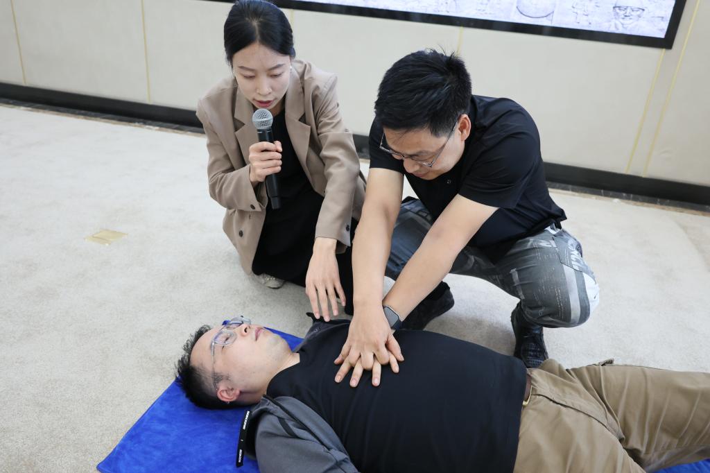 職工積極踴躍參與模擬演練,在邊學習邊實踐的過程中全方位、立體式感受和掌握急救要領(lǐng)。