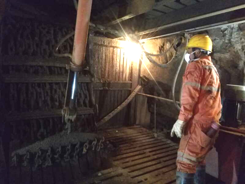 2017年7月15日夜班,1800平臺3號高位溜礦井堵塞,當(dāng)班員工采取多個辦法都無濟于事。接到信息后,李文利立即從個舊家里出發(fā)趕到老廠,換上工作服,迅速趕往現(xiàn)場。在聽取當(dāng)班員工匯報后,盡管存在隨時有落石掉下來的危險,但憑著多年積累的經(jīng)驗,他用手電筒反復(fù)觀察清楚堵塞情況后,系上安全繩,蹲在檢查井邊,把炸藥捆綁在竹桿尖上,讓工友拉好安全戴,他斜著身子一點一點地用竹桿把炸藥送到9米多高的堵塞點上,按照安全操作規(guī)程做好放炮前的準(zhǔn)備。扭動起爆按扭,隨著一聲炮響,在場員工懸著的心終于放了下來,生產(chǎn)又恢復(fù)了正常。