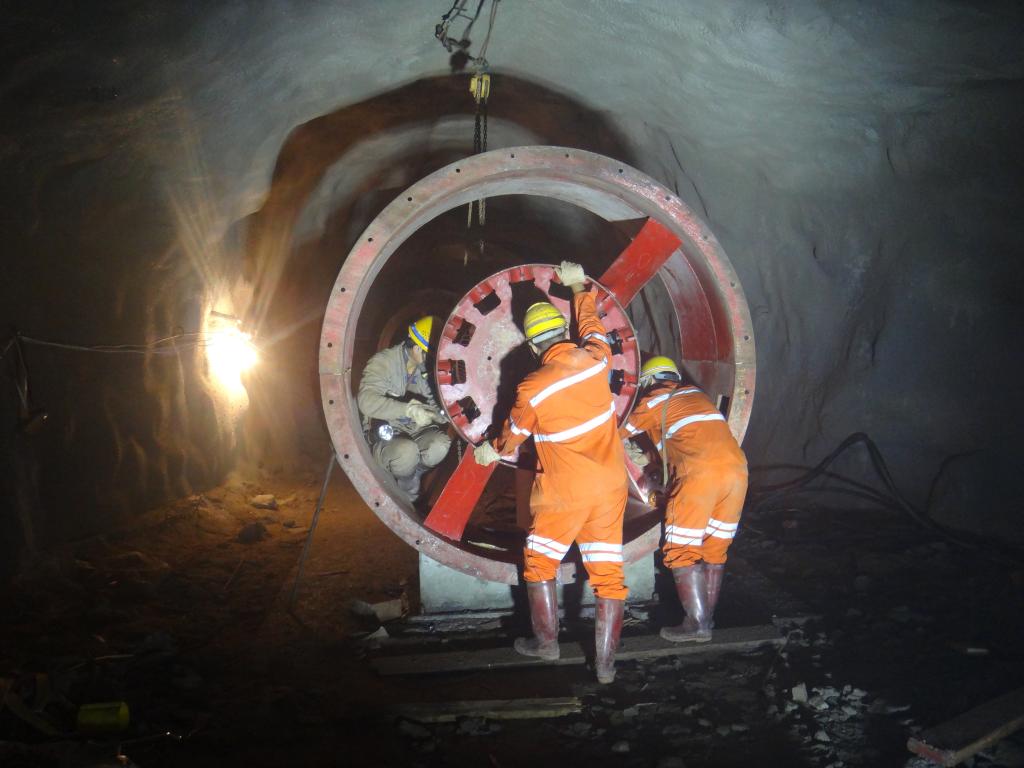 隨著高效采礦設(shè)備的不斷引進,井下通風系統(tǒng)建設(shè)成了急待解決的問題,為此,1540中段大箐東通風井安裝也就成了當務之急。2016年5月,1540中段大箐東通風井安裝工程緊張進行,所需安裝的設(shè)備中,250千瓦/時通風機9臺、1000KvA電力變壓器3臺,供電控制柜15面,其中單臺次設(shè)備重量達6噸,可以說重量重、體積大,面對坑下近10公里的漫長設(shè)備運輸線和安裝地點的有限空間,動力工段維修組的職工們,用巨人的意志和毅力,在近50個日日夜夜里揮灑汗水,通過不懈努力,按要求完成了安裝調(diào)試任務。