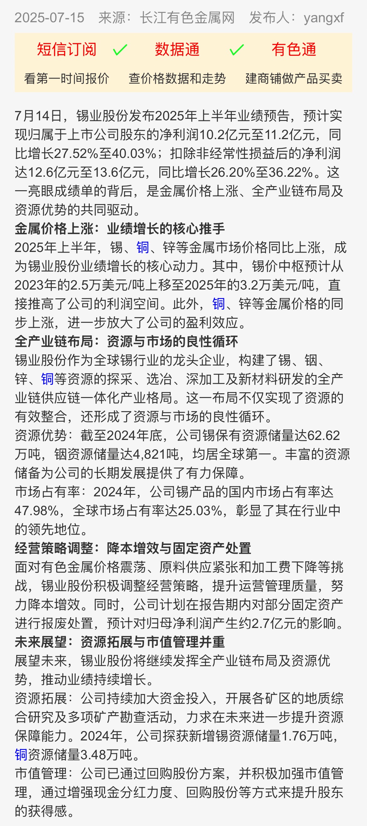 上一條:證券日報:錫價突破27萬元/噸 AI浪潮下行業(yè)有望維持高景氣度