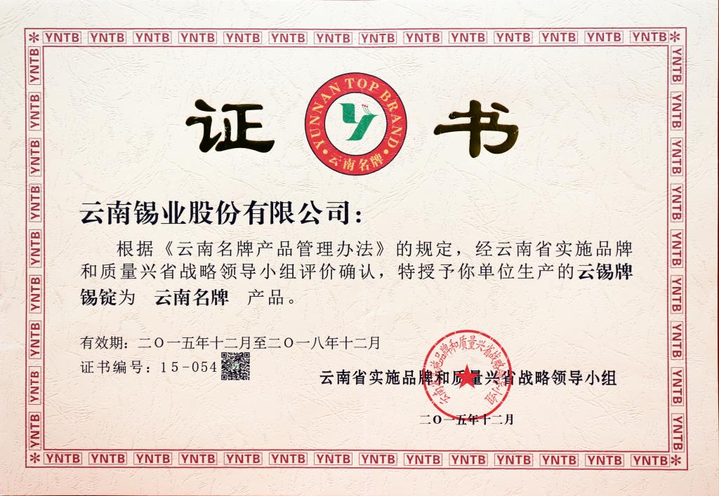 云錫牌錫錠、鑄造錫鉛爆料、鉛錠、鉍錠、銦錠為中國知名出口品牌