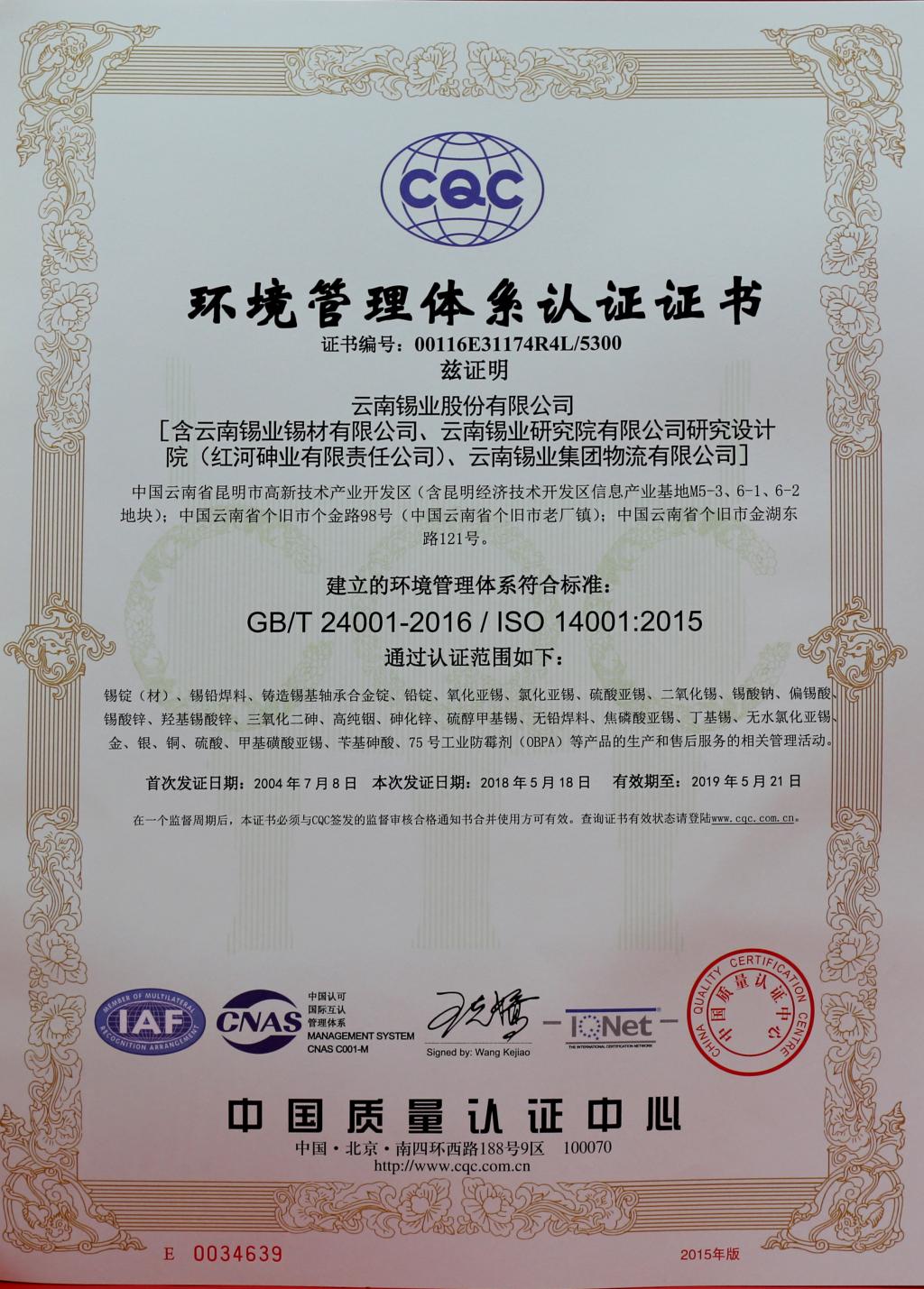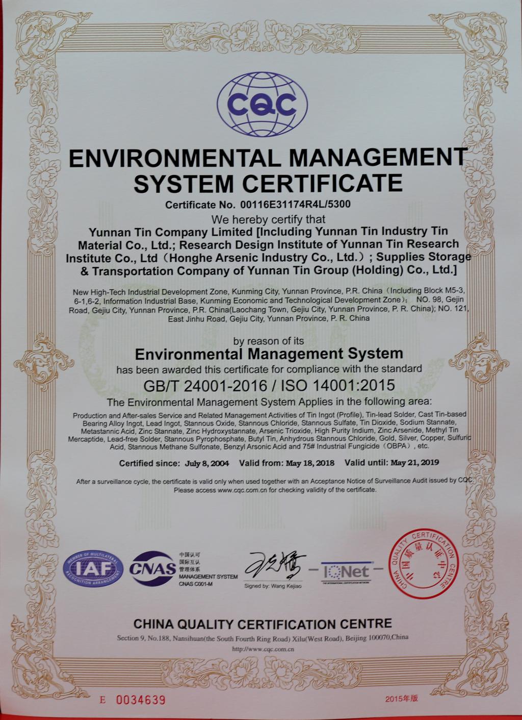 CQC環(huán)境管理體系認(rèn)證證書(英文)