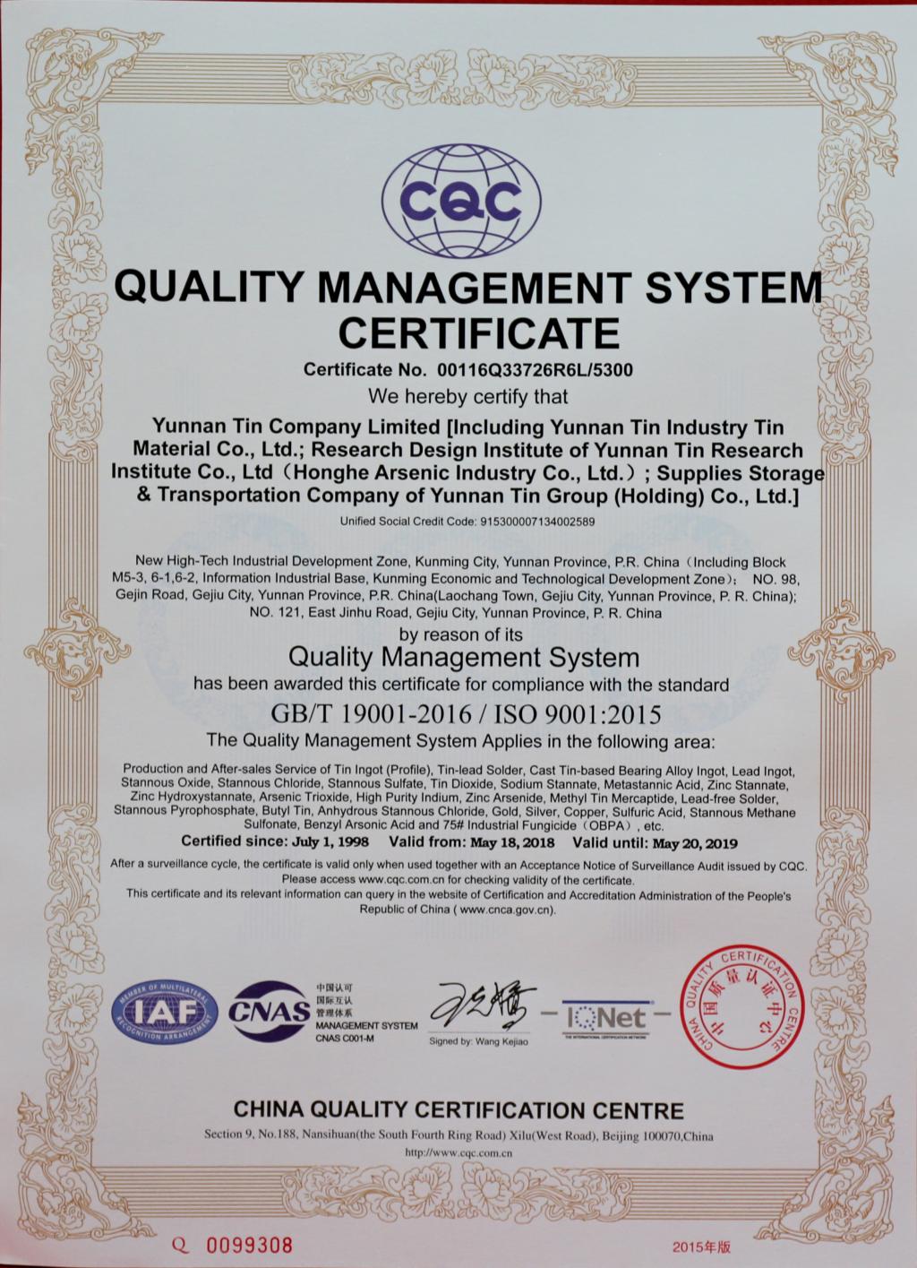 CQC質(zhì)量管理體系認(rèn)證證書(英文)
