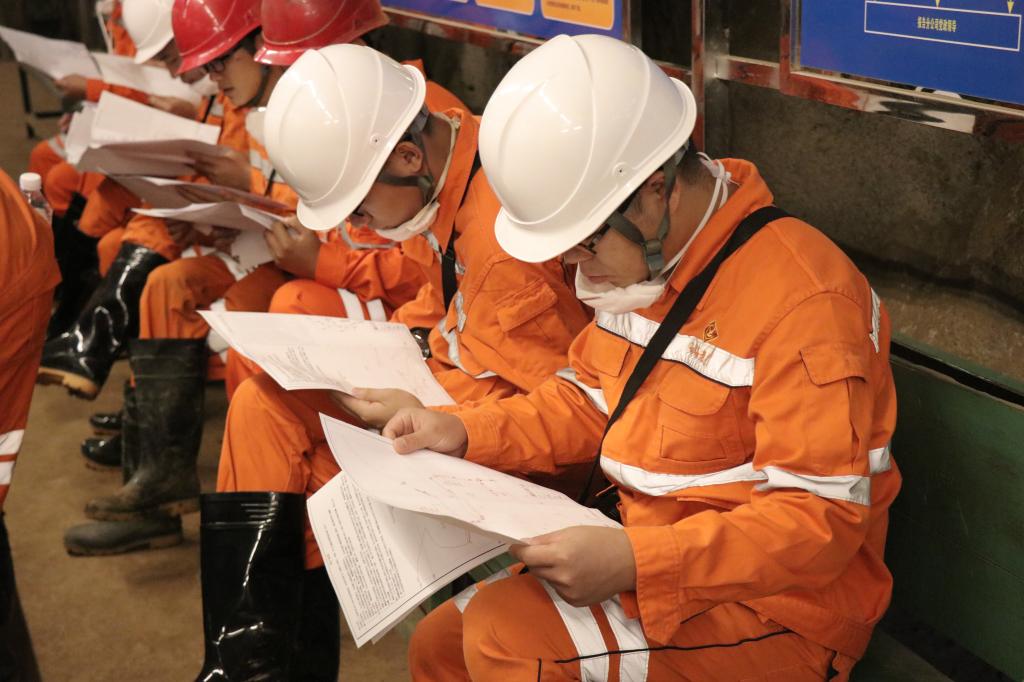參賽人員經(jīng)過安全員入坑安全培訓(xùn)后前往本次考試地點(diǎn)塘子凹坑的主力采場(chǎng)3-11-5E,由于高手云集,最后一輪比賽標(biāo)準(zhǔn)更高,要求更嚴(yán)。比賽現(xiàn)場(chǎng),選手們信心滿滿,躍躍欲試,氣氛嚴(yán)肅卻又不失親切。拿到考題后認(rèn)真勾畫,緊抓重點(diǎn)。在迎頭上,選手們沉著迎戰(zhàn),從容不迫,認(rèn)真排查現(xiàn)場(chǎng)與施工單上“異樣”,反復(fù)查看,爭(zhēng)取不漏任何細(xì)節(jié)。