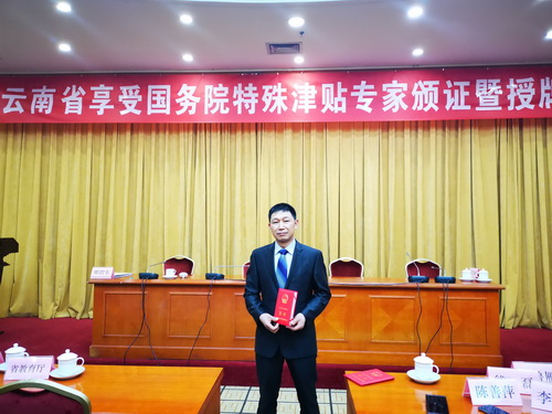 4月12日,在云南省2018年獲國務(wù)院政府特殊津貼專家頒證暨新設(shè)立專家基層科研工作站和省級博士后站授牌活動(dòng)會(huì)上,老廠分公司竹葉山坑一工區(qū)采礦一隊(duì)隊(duì)長、高級技師楊勇榮獲2018年國務(wù)院政府特殊津貼。云南省人社廳黨組副書記、副廳長和江峰、副廳長邢渭東、省委組織部人才工作處處長肖峰出席活動(dòng)并為2018年榮獲享受國務(wù)院政府特殊津貼的48位各行各業(yè)專家人才現(xiàn)場頒發(fā)證書。