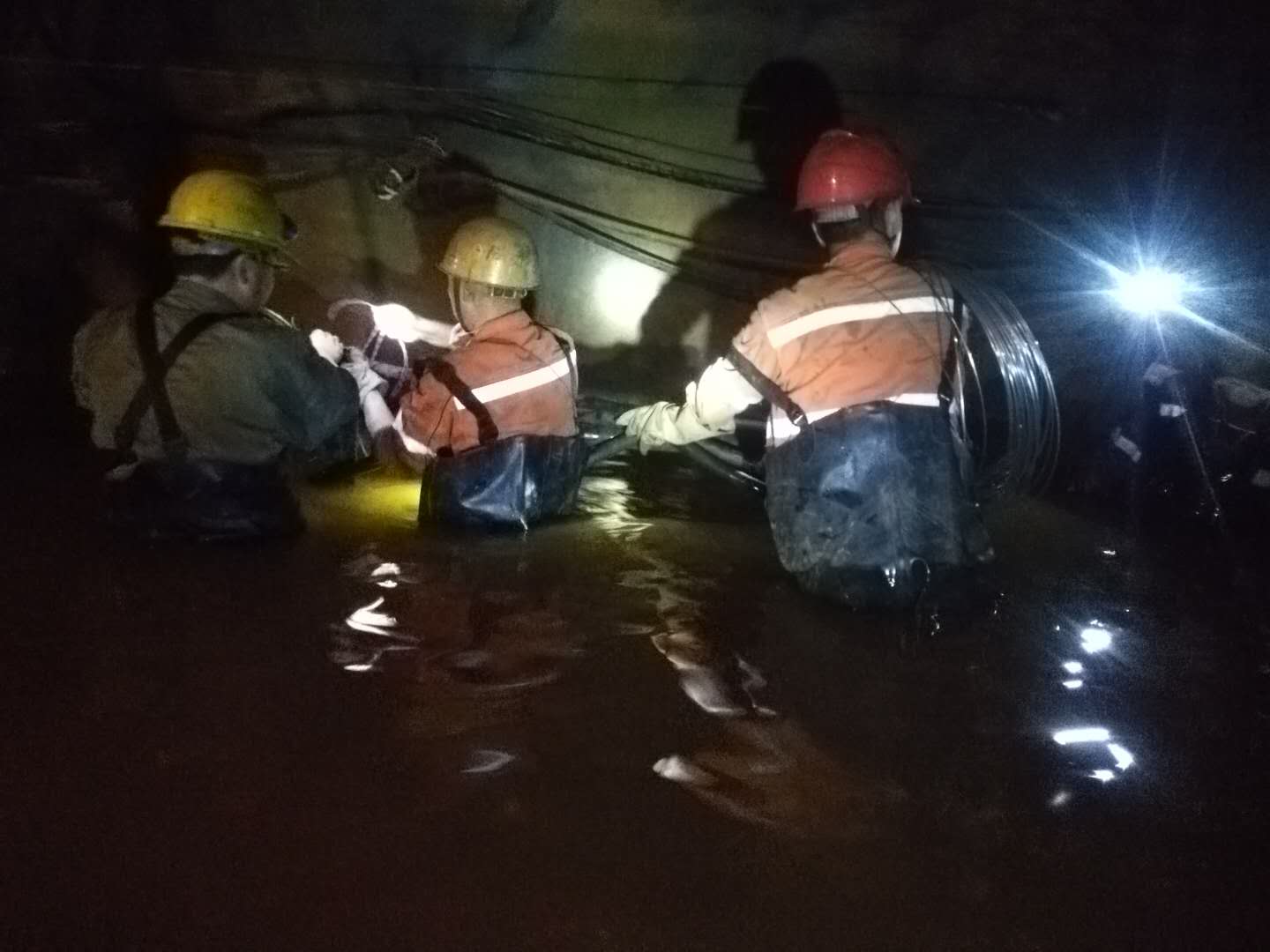 1700米中段,2公里多的上班路變成了一片汪洋,巷道、生產設備被洪水淹沒。由于水流湍急,水位持續(xù)上漲,救援搶險工作進展緩慢。危難關頭,干部職工脫下身上的衣物,就淌進了齊腰深的洪流中,一路摸索前行,設法向生產設備靠近,最終將被淹沒的設備搶救出來。