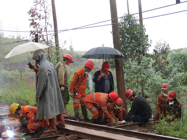 老廠分公司紅塘子鐵道運(yùn)輸線路是馬鹿塘坑出礦的主要運(yùn)輸線路,承擔(dān)著80%的礦量運(yùn)輸任務(wù)。8月3日,由于連續(xù)多日強(qiáng)降雨,老廠分公司紅塘子鐵道運(yùn)輸線路段出現(xiàn)局部陷落問(wèn)題,運(yùn)輸線路生產(chǎn)受阻。對(duì)此,敢打硬仗的馬坑干部職工在洪災(zāi)面前不氣餒,困難面前不低頭,以泰山壓頂不彎腰的氣魄與暴雨奮力搏斗,經(jīng)受住了一場(chǎng)特殊的考驗(yàn),譜寫(xiě)了一曲“狂風(fēng)暴雪何所懼,奮力抗災(zāi)保生產(chǎn)”的樂(lè)章。