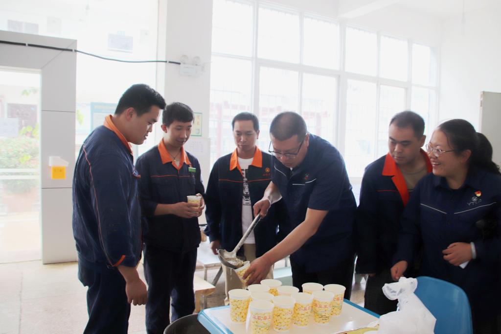 “輔助抱團(tuán)”活力四射。“每天看一下自己班的成績,哪方面存在不足,在接下來的工作中就要多想辦法,決不能給班組丟分”坑口食堂班組的負(fù)責(zé)人說道。像這樣的小班組在輔助工序有多個(gè),“每天在小班組之間進(jìn)行競賽,以月為統(tǒng)計(jì)單位,計(jì)算每天的服務(wù)質(zhì)量。我們會(huì)對競賽結(jié)果通過微信群進(jìn)行季度通報(bào),不斷增強(qiáng)組員干事創(chuàng)業(yè)的緊迫感和責(zé)任感?!薄氨R未動(dòng),糧草先行”。為確保競賽目標(biāo)順利完成,坑口大力開展防暑降溫宣傳教育,切實(shí)提高工友防暑安全意識;確保用電設(shè)備設(shè)施安全,多措并舉改善工友作業(yè)環(huán)境;適時(shí)調(diào)整夏季高溫作業(yè)勞動(dòng)和作息時(shí)間,確保工友人身安全。部門工會(huì)為職工送去綠豆湯、方便面、壓縮干糧等慰問品,并為參賽工區(qū)(隊(duì)組)配置部分微波爐、電磁爐、熱水壺及部分急救藥品,積極做好后勤保障,號召每一名管理人員、工友鼓足干勁、迎難而上,以嶄新姿態(tài)積極投身勞動(dòng)競賽中,用激情和汗水創(chuàng)造不平凡的勞動(dòng)業(yè)績。