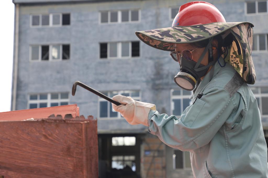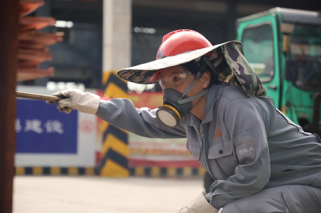 在一頂頂特殊的安全帽下,是一張張掛滿汗珠的臉龐;拉開口罩、取下護(hù)目鏡,個個都是溫柔的動人笑臉。她們每天與陰極銅板打交道,在產(chǎn)品運(yùn)輸區(qū)域經(jīng)受著風(fēng)吹日曬雨淋,每人佩戴的特殊安全帽因此而來,是質(zhì)監(jiān)中心為了緩解每天八小時的戶外暴曬對姑娘們皮膚造成的傷害,踐行“我為群眾辦實(shí)事”承諾的體現(xiàn),也成為了銅業(yè)分公司質(zhì)量監(jiān)測中心檢驗(yàn)三組的標(biāo)志。