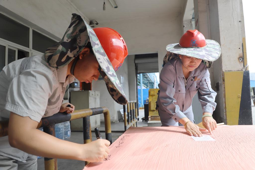今年以來,銅業(yè)分公司全力沖刺更高產(chǎn)量目標(biāo),每天的陰極銅產(chǎn)品產(chǎn)量較往年增加了近20%。檢驗(yàn)三組每天要完成160多捆銅產(chǎn)品的檢驗(yàn)打包工作,也就是每天要應(yīng)對2800多片銅板的質(zhì)量檢驗(yàn)。為了確保完成任務(wù),班組也從原本的8小時常班制調(diào)整為常班加中班的兩班模式。檢驗(yàn)三組的11名員工中只有2名男員工,每個班完成稱重、檢驗(yàn)、定級、貼標(biāo)簽等工作需要4個人,班組人數(shù)并不能較好滿足兩個班輪班作業(yè)。為了減輕中班壓力,常班人員主動承擔(dān)了更多的工作量,兩個班重疊作業(yè),全力完成每天410噸的檢驗(yàn)任務(wù),為每一片出廠的陰極銅產(chǎn)品把好質(zhì)量關(guān)。