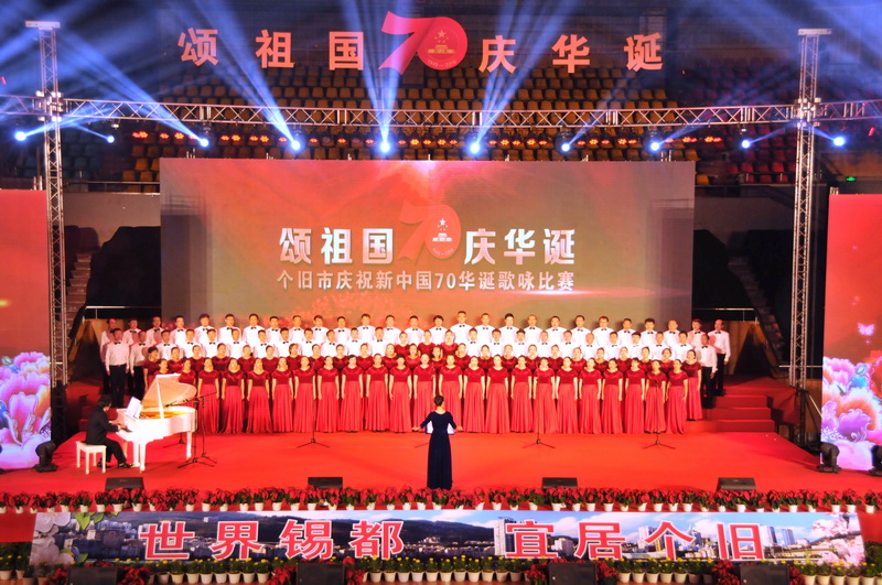 9月24日,“頌祖國 慶華誕”個(gè)舊市慶祝新中國70華誕歌詠比賽在州體育館精彩上演,由冶煉分公司員工組成的云錫集團(tuán)(控股)公司表演隊(duì)與來自州市的12支參賽隊(duì)激情放歌,以悠揚(yáng)的音樂展現(xiàn)新時(shí)代、新風(fēng)貌,用悅耳的歌聲詮釋建國70年來祖國日新月異的新變化、新成就??毓晒军h委常委、工會(huì)主席、錫業(yè)股份董事長湯發(fā)出席歌詠比賽現(xiàn)場,并為獲獎(jiǎng)選手頒獎(jiǎng)。