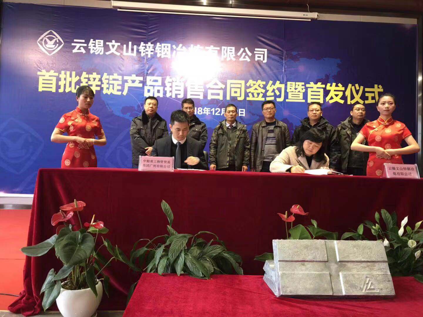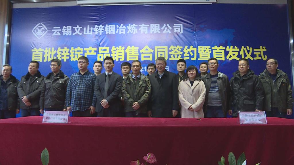 各簽約方在儀式上分別做了表態(tài)發(fā)言,并與文山鋅銦冶煉公司總經(jīng)理朱北平簽訂首批鋅錠銷售合同。隨后,參加簽約儀式的嘉賓和領(lǐng)導(dǎo)對(duì)首批產(chǎn)品的首發(fā)進(jìn)行了剪彩。