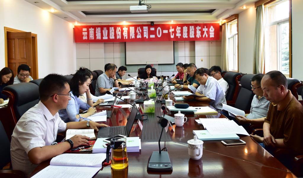 本次年度股東大會(huì)以現(xiàn)場(chǎng)表決結(jié)合網(wǎng)絡(luò)投票方式,審議通過(guò)了《云南錫業(yè)股份有限公司2017年度董事會(huì)工作報(bào)告》《云南錫業(yè)股份有限公司2017年度監(jiān)事會(huì)工作報(bào)告》《云南錫業(yè)股份有限公司2017年度財(cái)務(wù)決算報(bào)告》《云南錫業(yè)股份有限公司2017年度利潤(rùn)分配議案》《云南錫業(yè)股份有限公司董事會(huì)關(guān)于2017年度募集資金存放和使用情況的專項(xiàng)報(bào)告》《云南錫業(yè)股份有限公司2018年度經(jīng)營(yíng)預(yù)算方案》《云南錫業(yè)股份有限公司關(guān)于計(jì)提2017年資產(chǎn)減值準(zhǔn)備及核銷資產(chǎn)的議案》《云南錫業(yè)股份有限公司關(guān)于選舉第七屆董事會(huì)獨(dú)立董事的議案》《云南錫業(yè)股份有限公司2017年年度報(bào)告》及《云南錫業(yè)股份有限公司2017年年度報(bào)告摘要》等九項(xiàng)議案。