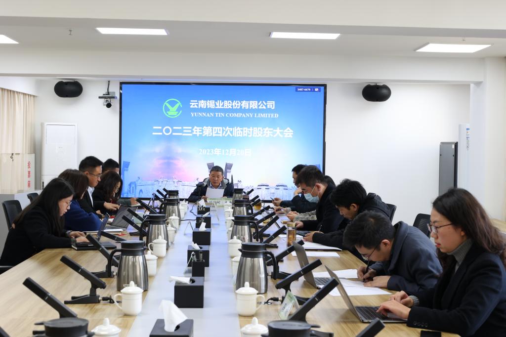 12月20日,錫業(yè)股份2023年第四次臨時(shí)股東大會(huì)采取現(xiàn)場(chǎng)投票與網(wǎng)絡(luò)投票相結(jié)合的方式召開。錫業(yè)股份董事長(zhǎng)、總經(jīng)理劉路坷先生主持現(xiàn)場(chǎng)會(huì)議。
