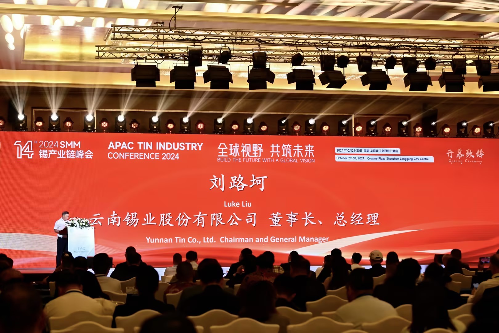 10月29日,2024年(第十四屆)中國錫產業(yè)鏈峰會在深圳開幕。本屆中國錫產業(yè)鏈峰會由上海有色網(wǎng)主辦,云錫特邀協(xié)辦。錫業(yè)股份黨委書記、董事長、總經理劉路坷率隊參加本次錫產業(yè)鏈峰會并做開幕致辭。