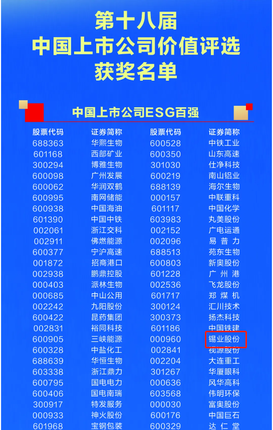 同日,證券時(shí)報(bào)主辦的“第十八屆中國(guó)上市公司價(jià)值論壇暨2024新質(zhì)生產(chǎn)力巡禮長(zhǎng)三角行”在江蘇昆山舉辦,會(huì)議在全面考量上市公司經(jīng)營(yíng)、財(cái)務(wù)、創(chuàng)新、市場(chǎng)影響以及社會(huì)責(zé)任等各方面表現(xiàn)的基礎(chǔ)上評(píng)選出了“2024中國(guó)上市公司ESG百?gòu)?qiáng)”榜單,錫業(yè)股份成功入選。此次榮獲2023年度金信披獎(jiǎng)及“2024中國(guó)上市公司ESG百?gòu)?qiáng)”稱號(hào)是公司高質(zhì)量發(fā)展、全方位綜合實(shí)力不斷增強(qiáng)的體現(xiàn),更是各界評(píng)委對(duì)公司規(guī)范運(yùn)作、信息披露、環(huán)境保護(hù)、社會(huì)責(zé)任履行及公司治理等工作的充分肯定。