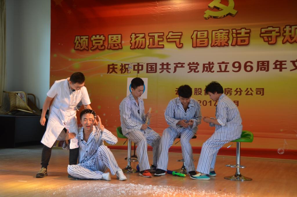 6月28日下午,卡房分公司黨委圍繞“貫徹六中全會(huì)精神,推進(jìn)全面從嚴(yán)治黨” 黨風(fēng)廉政教育月活動(dòng)主題,舉辦了一臺(tái)以小品、情景劇、詩(shī)朗誦等貫穿廉潔從業(yè)主線的慶祝中國(guó)共產(chǎn)黨成立96周年文藝匯演