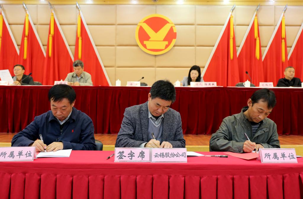 湯發(fā)與各所屬單位黨委書記簽訂了錫業(yè)股份2018年黨建工作責(zé)任制和意識(shí)形態(tài)工作兩個(gè)責(zé)任書。