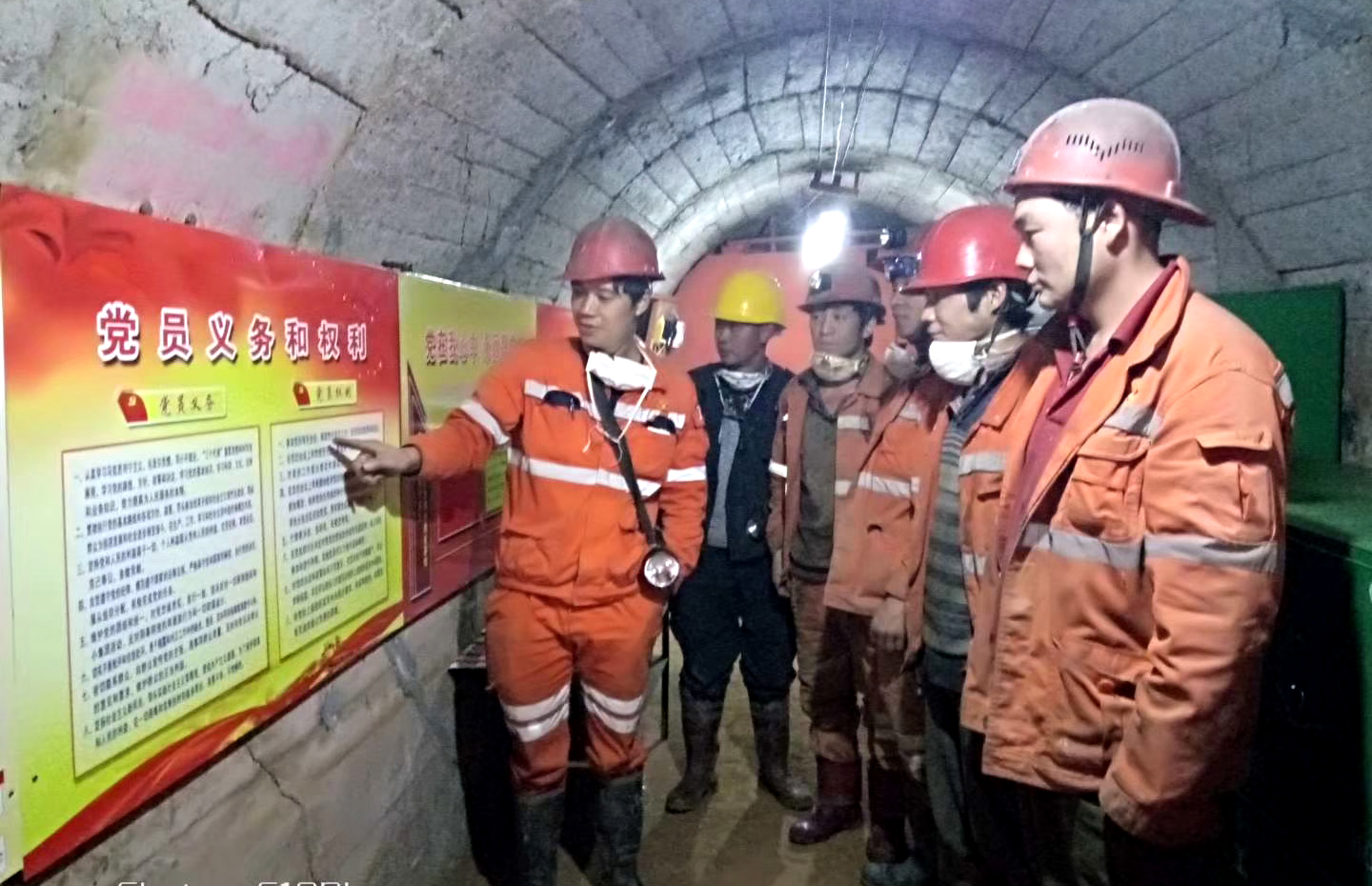 在提升改造后的“黨員學(xué)習(xí)陣地”內(nèi),有著整齊干凈的學(xué)習(xí)休息環(huán)境,配有熱水熱茶。內(nèi)設(shè)有黨報(bào)黨刊、黨建讀物,墻上掛有入黨誓詞、黨員義務(wù)和權(quán)利、“三會(huì)一課”制度、黨員積分制公示欄等牌匾;還有著排列整齊的各種操作規(guī)程、崗位職責(zé)、班組隱患整改、違章整治、上班人員定位系統(tǒng)管理等內(nèi)容,以及安全交接工作記錄、班組工具箱、與地面聯(lián)系座機(jī)電話和愛心小藥箱等。它既是一間礦山基層黨建工作和班組規(guī)范管理的展覽室,更是長(zhǎng)期工作在井下一線的黨員及員工們暖意融融的“家”。