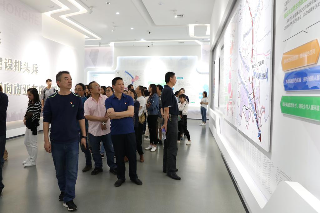 在紅河展覽館,黨員干部在講解員的帶領下,認真觀看了《大美紅河》宣傳片,參觀了3大展廳。通過觀看展廳里的一幅幅圖片、一段段影片、一件件展品,大家充分了解了紅河州的自然風光、風土人情、民族文化、發(fā)展戰(zhàn)略、總體規(guī)劃等;通過親身體驗數(shù)字沙盤、動感科技、4D影像等電子科技互動設備,大家對家鄉(xiāng)的發(fā)展成就倍感自豪。