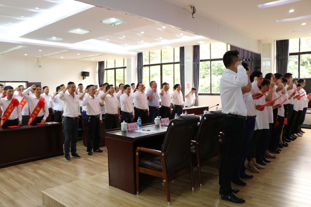 先進黨支部、優(yōu)秀共產(chǎn)黨員代表在會上作了交流發(fā)言。預(yù)備黨員和全體參會黨員面對黨旗莊嚴宣誓。