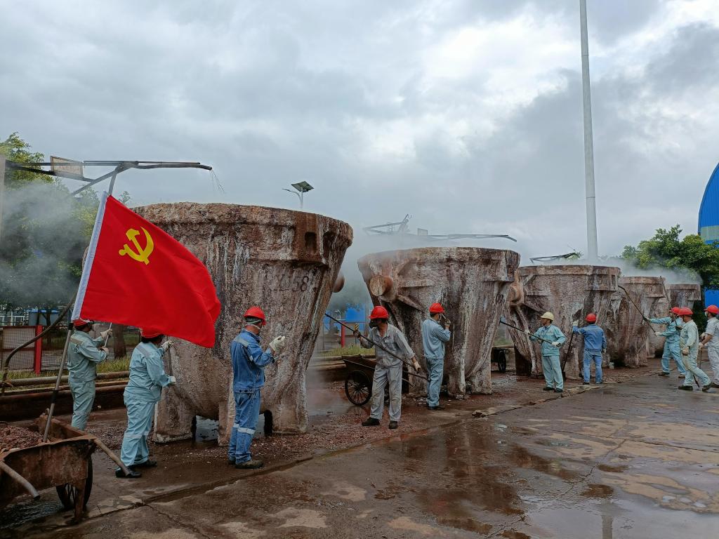 黨支部“創(chuàng)新項(xiàng)目”—渣緩冷場(chǎng)循環(huán)噴淋水凈化的研究。選礦車間黨支部充分發(fā)揮“生產(chǎn)出題 黨建解題”的作用,著力解決渣緩冷冷卻水難冷卻、管道結(jié)晶等堵點(diǎn)、卡點(diǎn)問題,成立支部創(chuàng)新項(xiàng)目研發(fā)小組,定期對(duì)水質(zhì)、結(jié)晶取樣化驗(yàn)分析,對(duì)所含元素、含量的高低、顏色等性質(zhì)進(jìn)行比對(duì)分析,找到管道易結(jié)晶的問題所在,通過深入研究、實(shí)驗(yàn)對(duì)比、參數(shù)控制等措施決定加裝FBL過濾器。自設(shè)備安裝投入使用后,渣緩冷水質(zhì)明顯改善,水看起來比以前更清了,管道結(jié)垢現(xiàn)象也有所緩解。