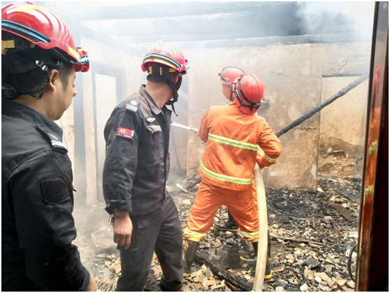 4月18日中午12時(shí)30分許,華聯(lián)鋅銦公司保衛(wèi)部接到都龍鎮(zhèn)政府打來的滅火救援電話:都龍鎮(zhèn)街頭新加油站對面一處民宅發(fā)生大火。保衛(wèi)部主任吳賢明立即指揮調(diào)度公司10名消防隊(duì)員及一輛消防車迅速趕到火災(zāi)現(xiàn)場投入撲火救援工作中。